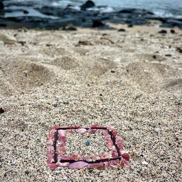 It was more than I could’ve asked for when a pink frame formed from the broken shells, with sturdy lines and solid color. It’s one thing to be given a picture, but to be framed in love is a true wonder.