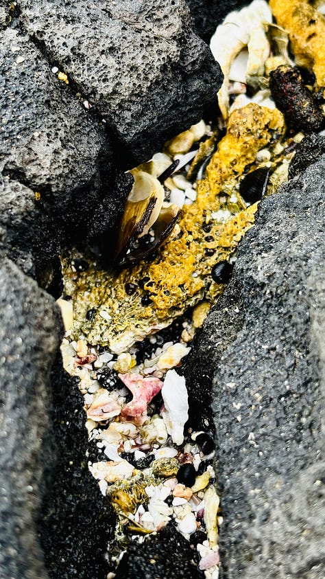 Happy to find it unoccupied, I unloaded my gear and went straight into the water. The tide was high and the rocks were covered, slippery beneath my bare feet. Though I stepped carefully, I didn’t hesitate to walk into the waves crashing, or to submerge myself fully into the same pools that have held me every time that I’ve needed to be loved.